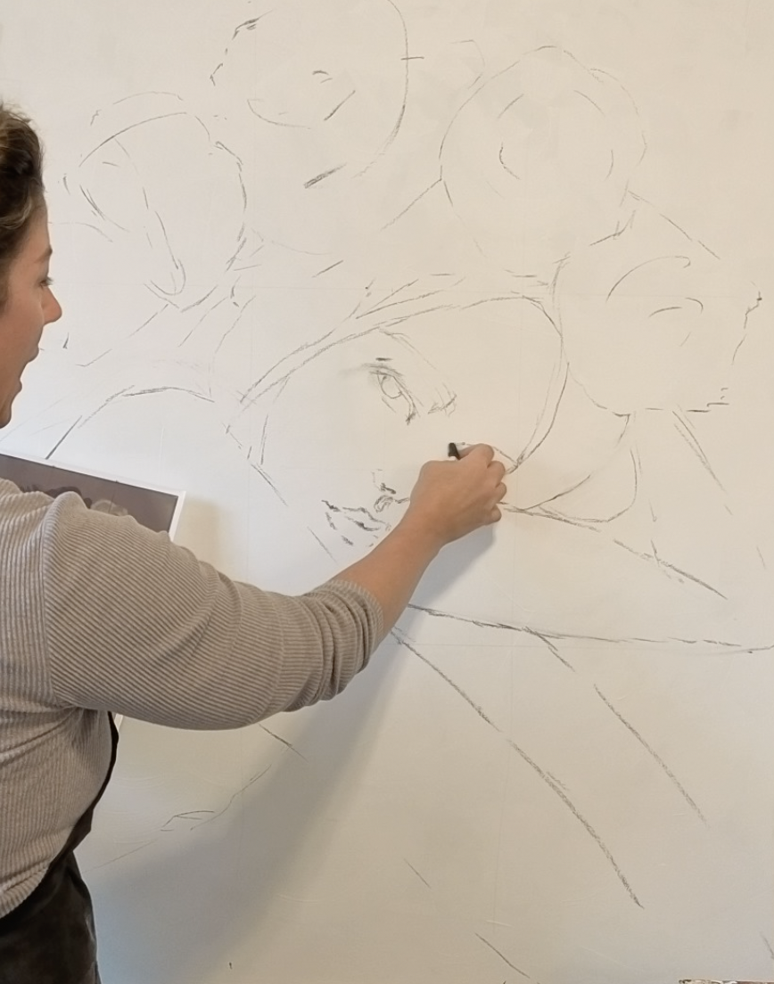 Preparing the surface and transferring the drawing loosely while keeping flexibility.
